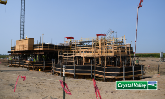 Just after 8 am this morning, the construction crew began the continuous cement pour of the slip forms at the new feed mill in Trimont. Work will be non-stop with rotating shifts until the 160+ foot pour is complete.
